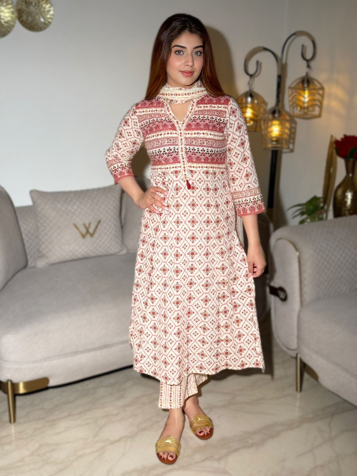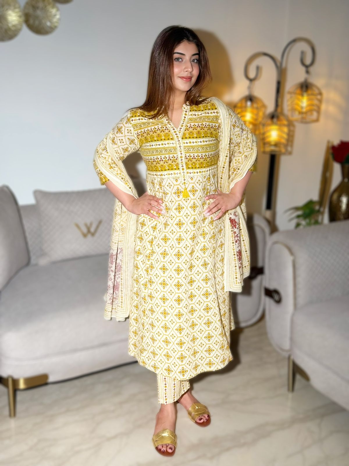 Zariya Radiance Cotton Suit Set – Yellow & Red